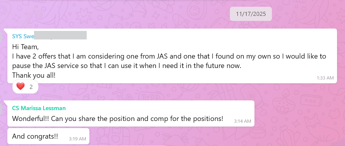 Sweta was operating as an Executive Assistant but felt boxed into a support label that understated her real leverage. She assumed higher pay meant moving into operations or management. Instead, after reframing her experience around executive leverage, prioritization, and systems ownership, she landed a role that added ~+$90K in 45 days. Same strengths, radically different market response.